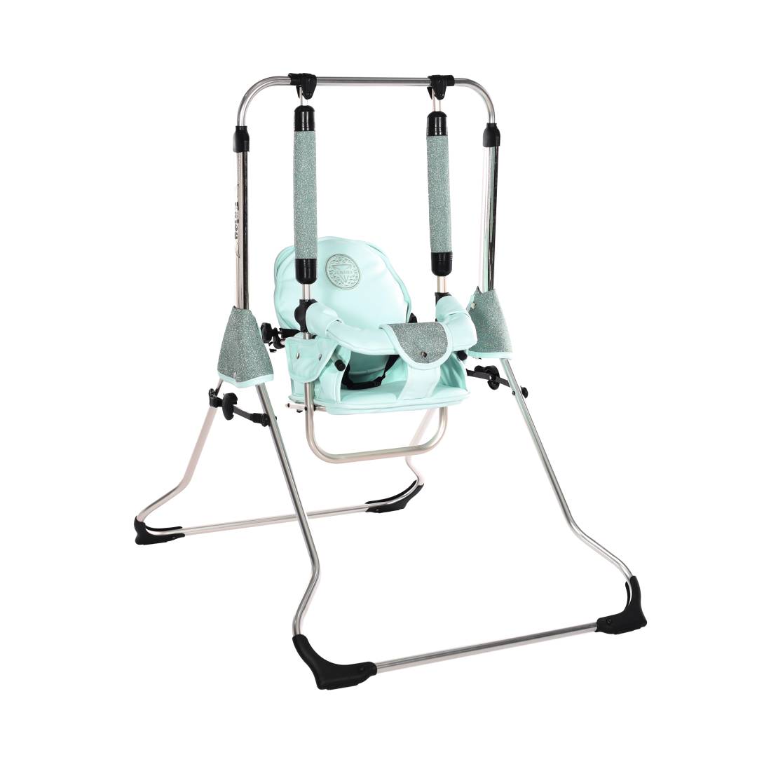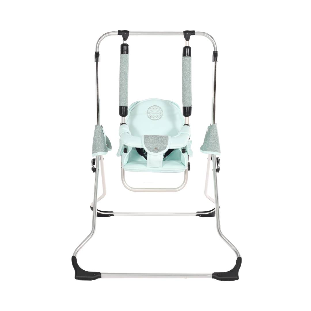 Huśtawka została zaprojektowana tak, aby łączyć bezpieczeństwo niemowlęcia, wygodę starszaka i praktyczność dla rodzica. Konstrukcja jest lekka, a jednocześnie stabilna dzięki stalowemu stelażowi oraz antypoślizgowym stopkom. Oparcie posiada wielostopniową regulację, a wbudowane zabezpieczenie chroni przed przypadkowym złożeniem. Materiał jest przyjemny w dotyku, wytrzymały i łatwy w czyszczeniu.