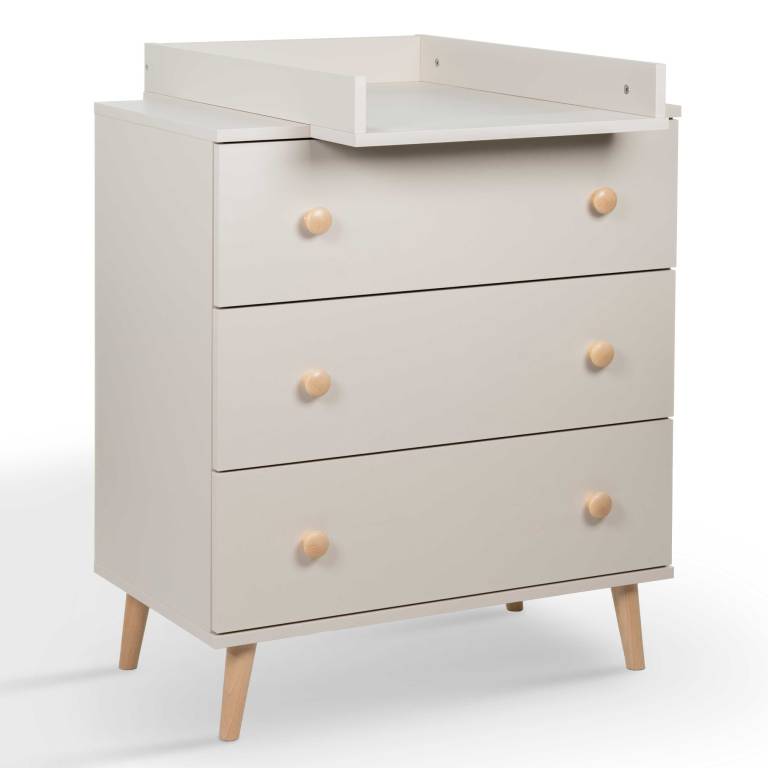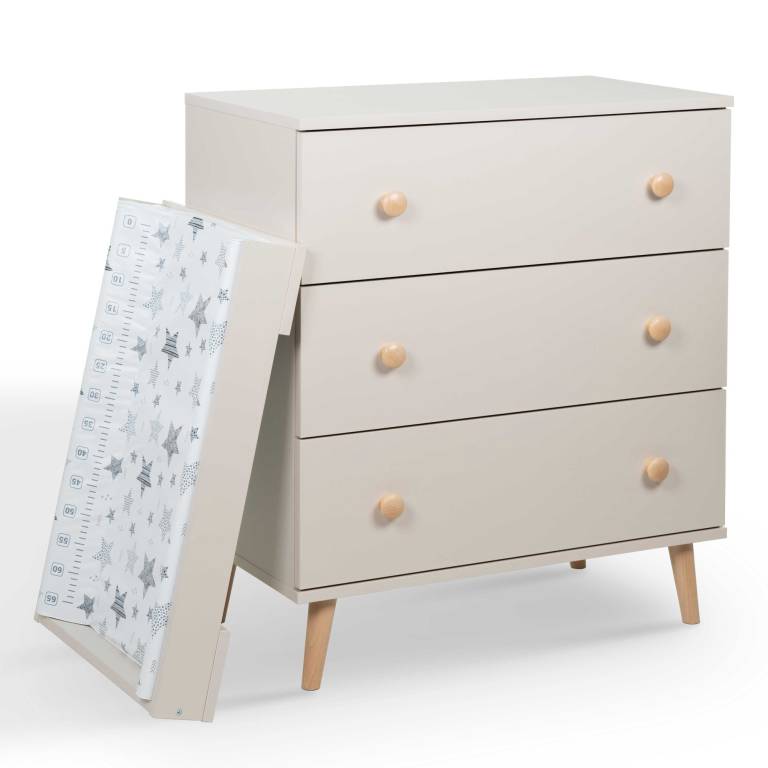 Praktyczny przewijak w zestawie – komoda może pełnić funkcję przewijaka (nakładka montowana jest dowolnie na blacie), co czyni ją niezwykle funkcjonalnym centrum pielęgnacyjnym dla noworodka.