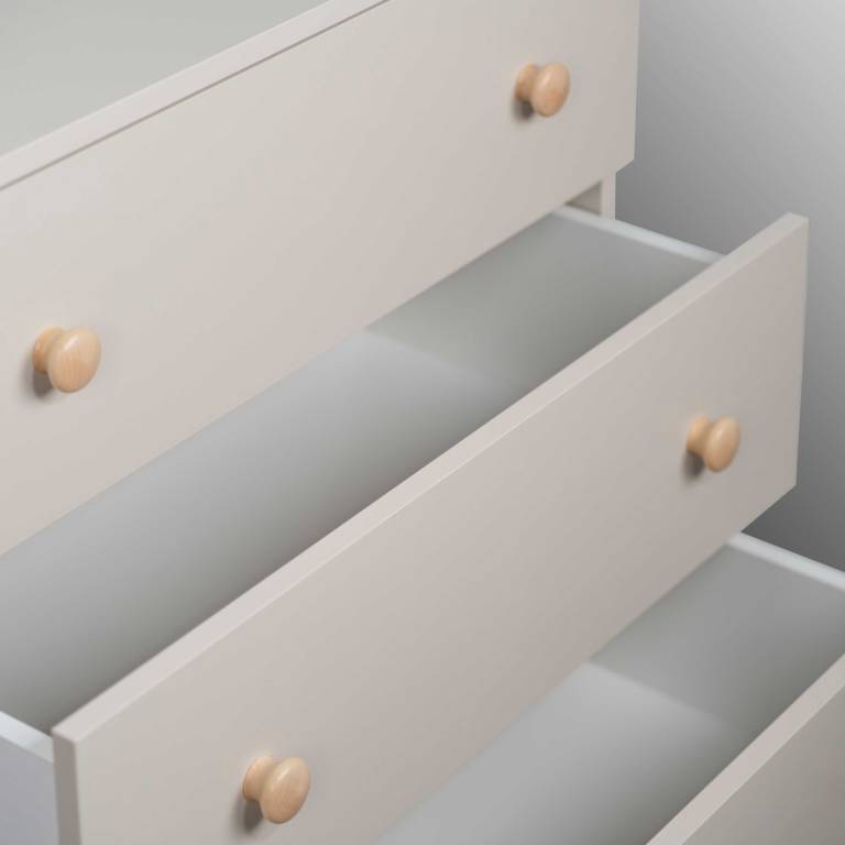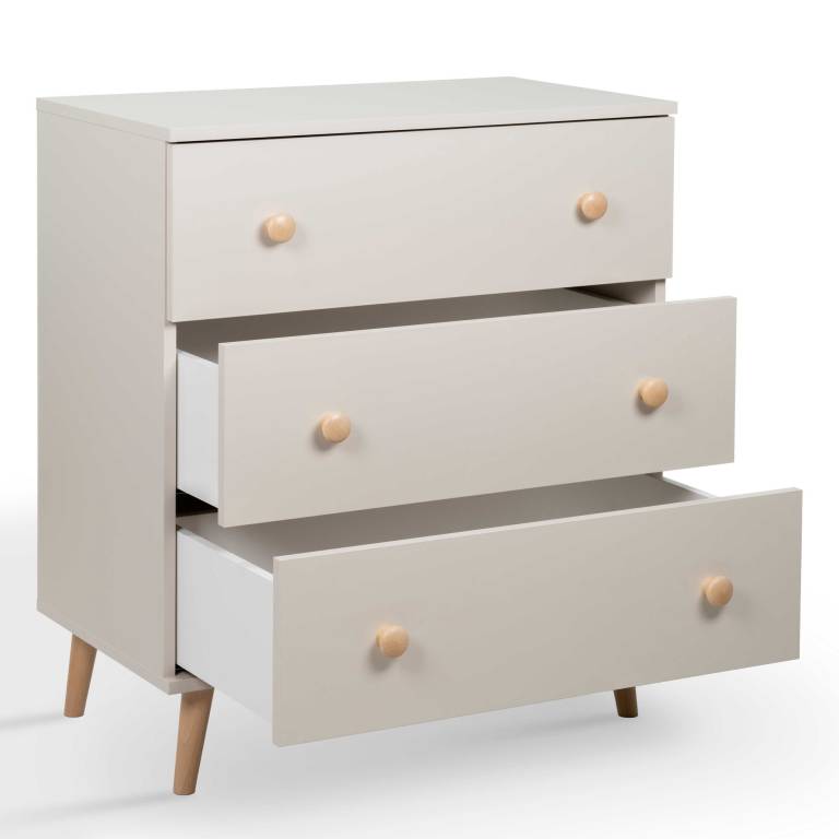 Dzięki solidnej konstrukcji i trzem pojemnym szufladom, Komoda Junama oferuje mnóstwo miejsca do przechowywania dziecięcych ubranek, pieluszek, ręczniczków i wszystkich codziennych akcesoriów. Wszystko, co najważniejsze, znajdzie się w zasięgu ręki, a pokój Twojego dziecka zawsze pozostanie uporządkowany.
