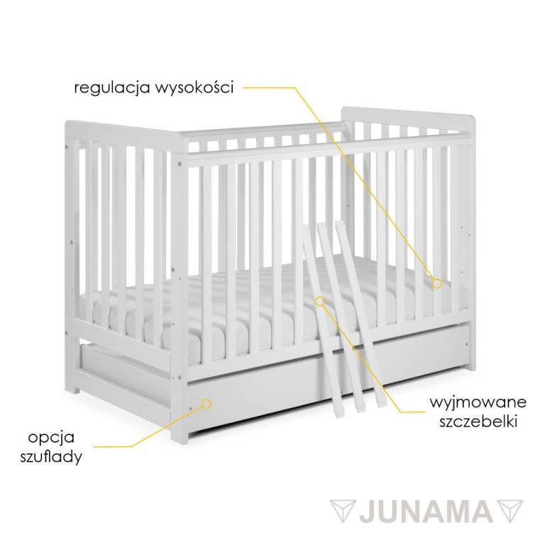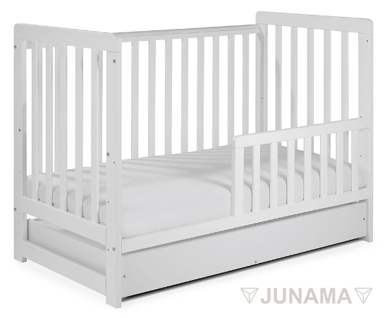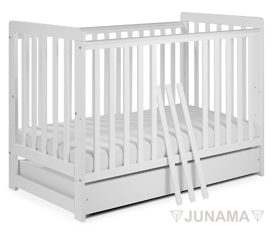 Łóżeczko JUNAMA z szufladą i barierką ochronną