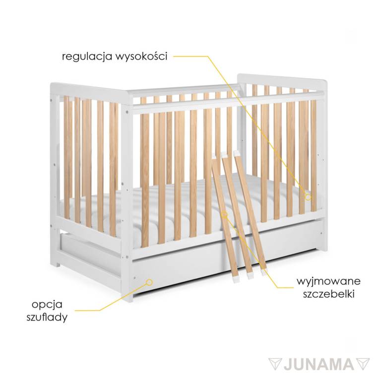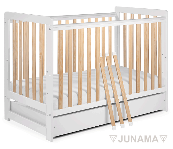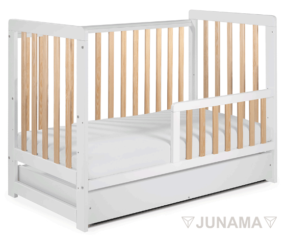 Łóżeczko JUNAMA z szufladą i barierką ochronną
