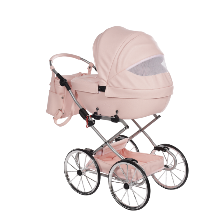 Wózek posiada również pojemny kosz na zabawki oraz torbę na rączkę – idealne na wszystkie akcesoria dla lalki. Budka z regulacją oraz pokrowiec dopełniają całości i sprawiają, że zabawa przypomina opiekę nad prawdziwym niemowlęciem.