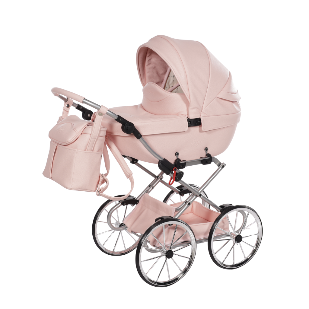 Dzięki amortyzowanym, dużym kołom wózek prowadzi się lekko zarówno w domu, jak i na spacerze. Regulowana rączka umożliwia dopasowanie wysokości do wzrostu dziecka, dzięki czemu wózek „rośnie” razem z nim. Gondolę można montować przodem lub tyłem do kierunku jazdy, co zwiększa realizm zabawy.