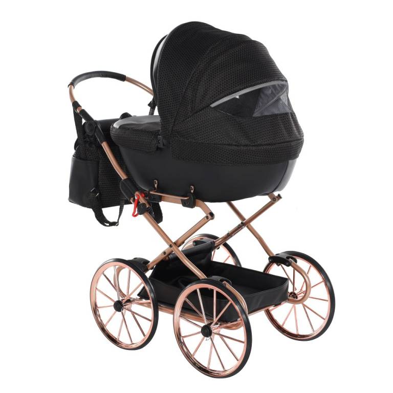 Model DOLCE zachwyca elementami z lamateksu, które nadają mu subtelnego połysku i ekskluzywnego charakteru – dokładnie tak jak w prawdziwych wózkach JUNAMA.