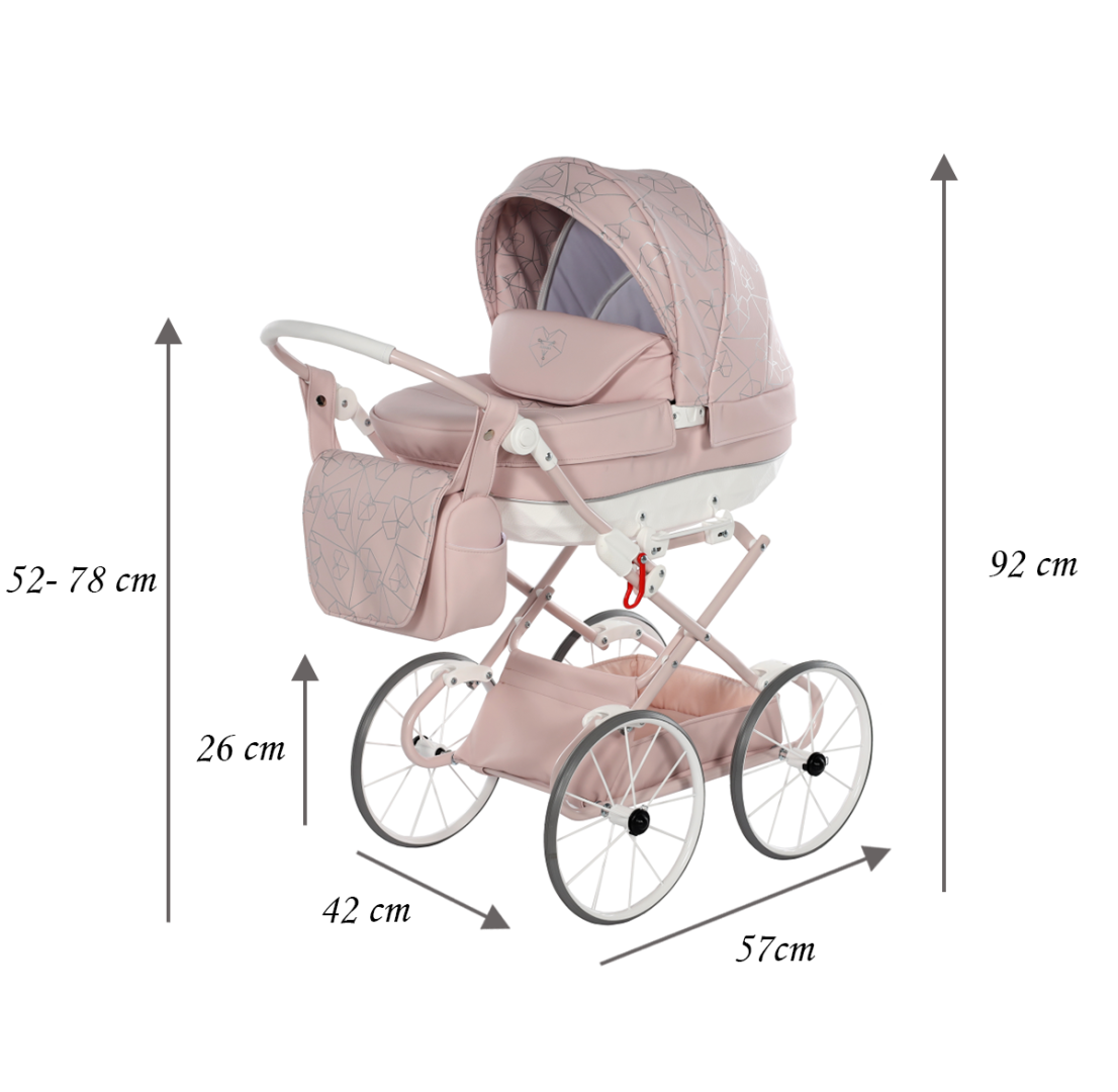 Wózek dla lalek Junama Heart Mini Classic to wyjątkowa propozycja dla dziewczynek, które marzą o wcieleniu się w rolę prawdziwej mamy. Stylowy design w połączeniu z solidnym wykonaniem sprawia, że zabawa staje się jeszcze bardziej realistyczna i pełna radości. Model przeznaczony jest dla dzieci w wieku od 3 do 8 lat i doskonale sprawdzi się zarówno podczas spacerów, jak i zabawy w domu.