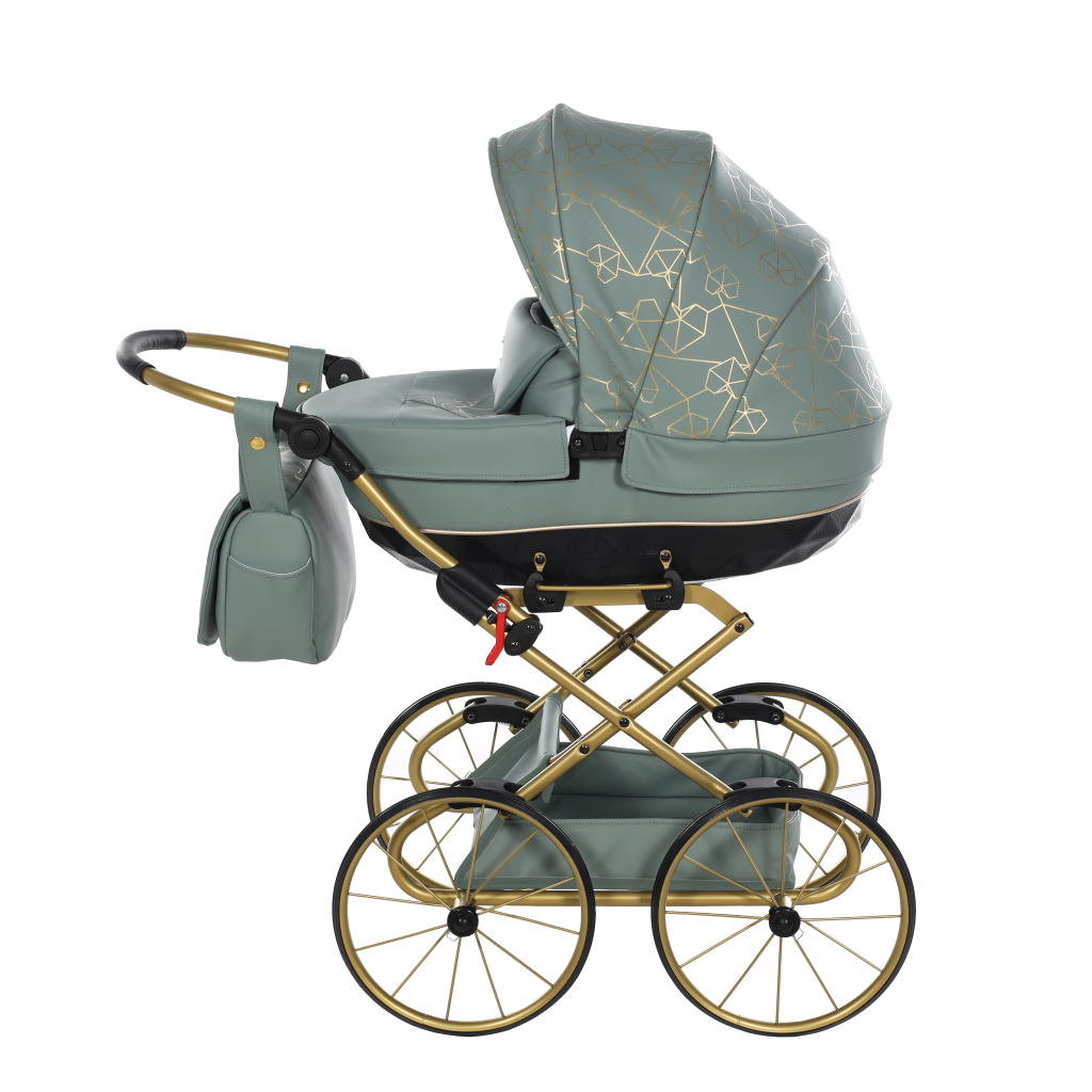Tapicerka wykonana z wysokiej jakości skóry ekologicznej nie tylko pięknie się prezentuje, ale również jest odporna na zabrudzenia i wilgoć. Wystarczy przetarcie wilgotną ściereczką, aby wózek znów wyglądał jak nowy. Uroczy wzór w serduszka dodaje całości wyjątkowego, dziewczęcego uroku.