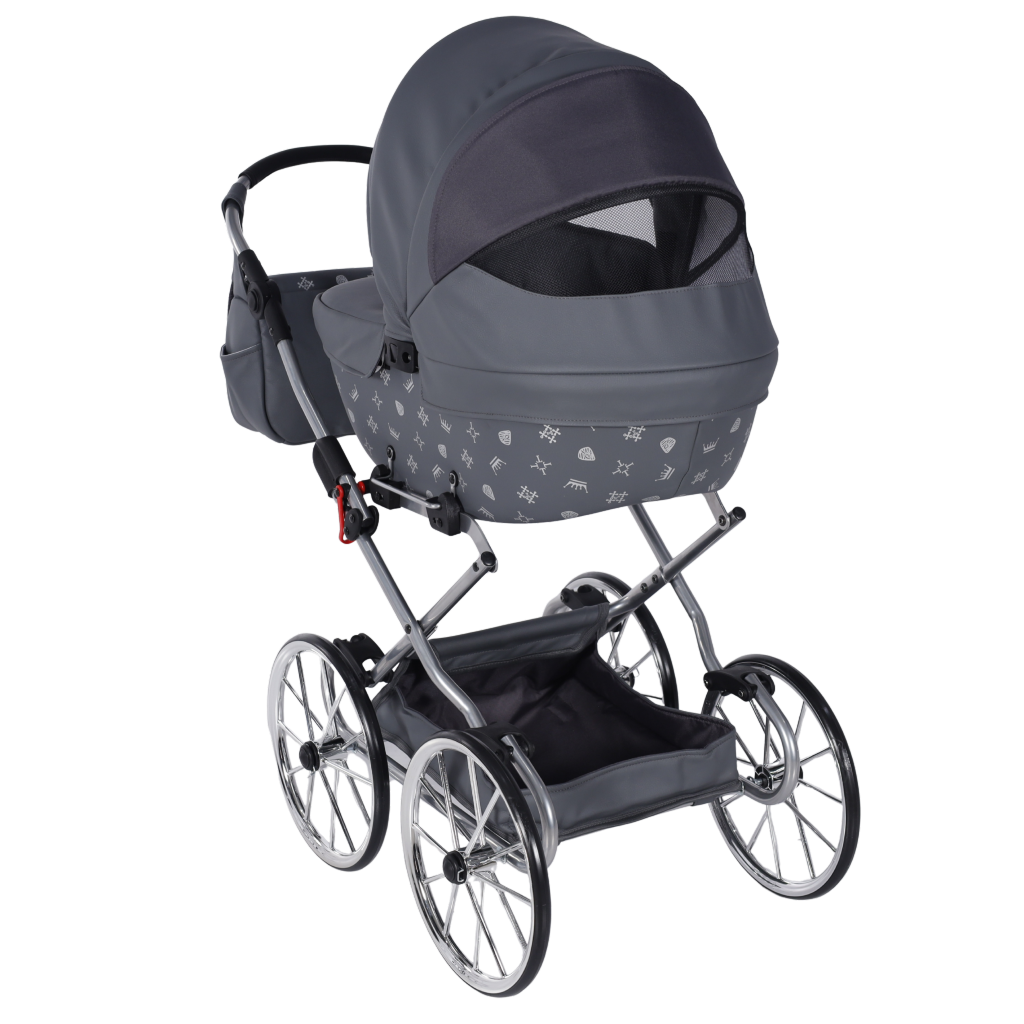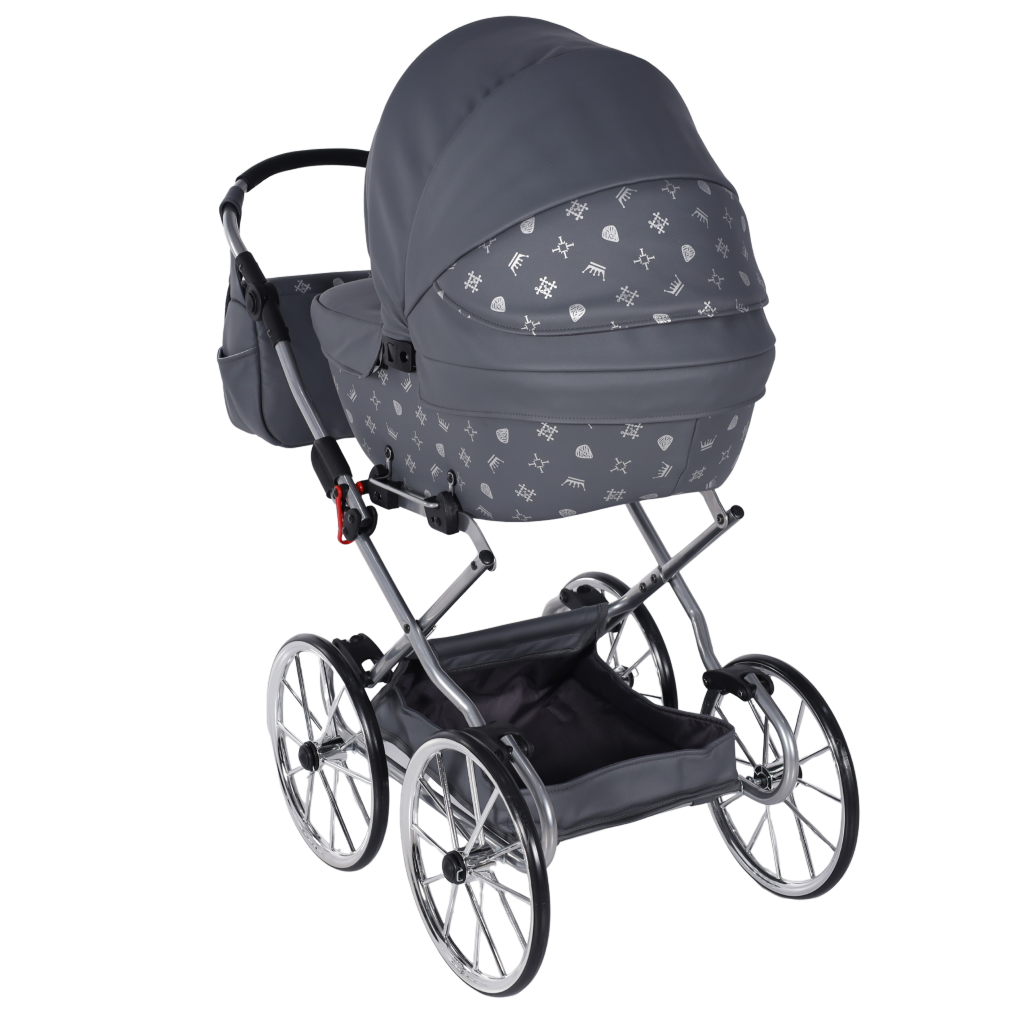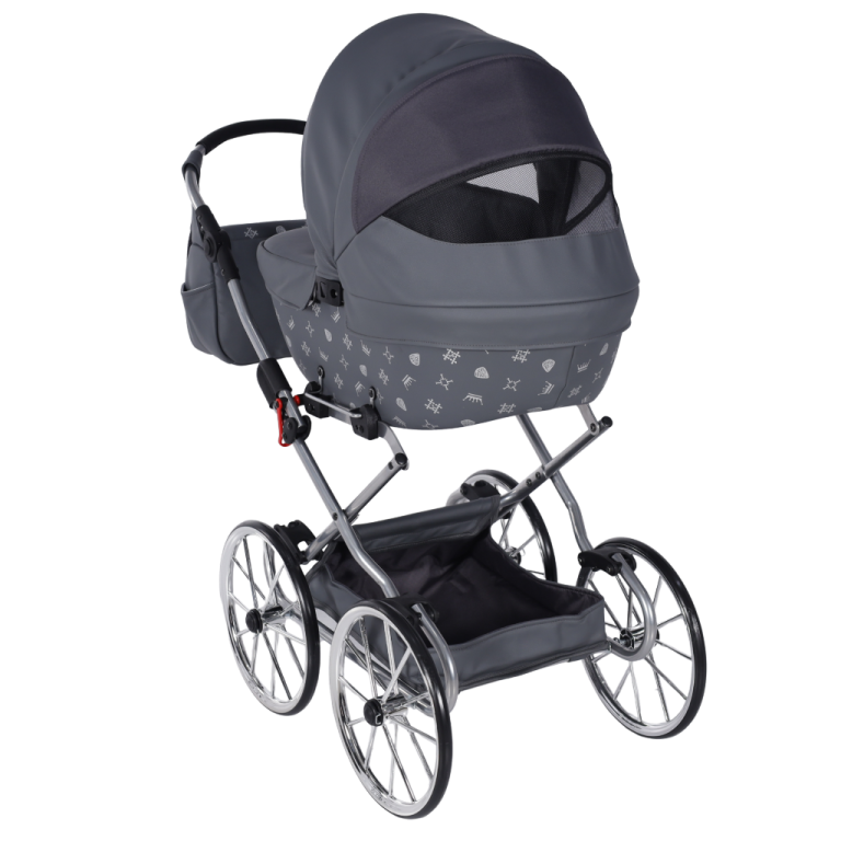 JUNAMA Imperial Mini Classic to wyjątkowy wózek lalkowy dla dzieci, które kochają elegancję, detale i zabawę w prawdziwą opiekę. Model został wykonany z wysokiej jakości eko-skóry, ozdobionej finezyjnym sitodrukiem, co nadaje mu ekskluzywny, klasyczny wygląd w stylu vintage. Każdy detal został dopracowany z niezwykłą precyzją, dzięki czemu wózek zachwyca już od pierwszego spojrzenia.