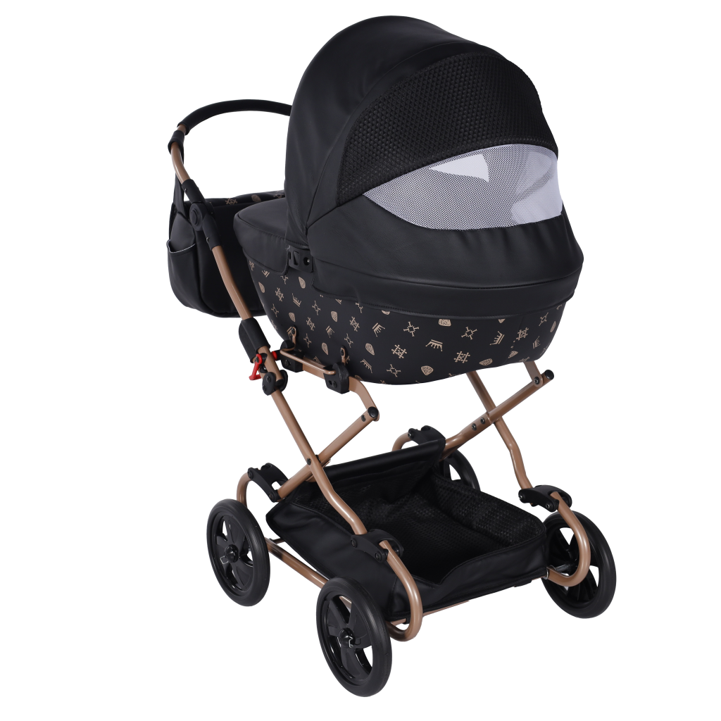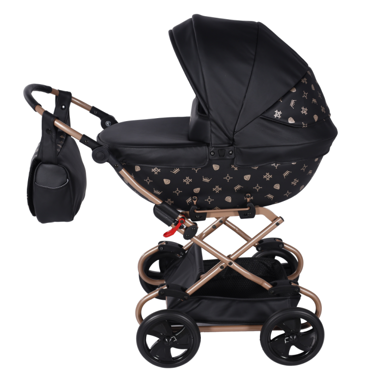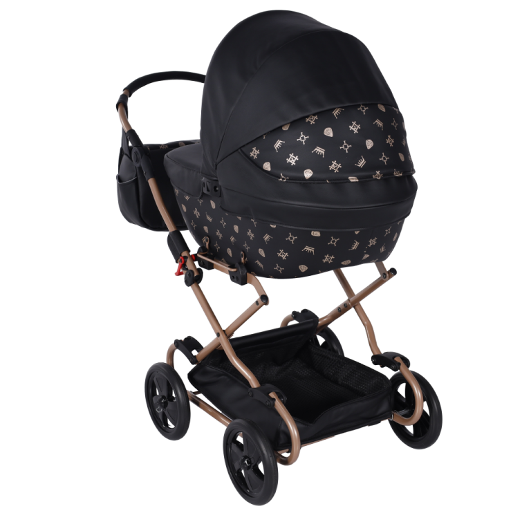JUNAMA IMPERIAL MINI to elegancki wózek dla lalek, stworzony z myślą o dzieciach, które uwielbiają stylową zabawę w opiekę. Model został wykonany z wysokiej jakości eko-skóry ozdobionej efektownym sitodrukiem, co nadaje mu luksusowy wygląd i podkreśla dbałość o każdy detal.