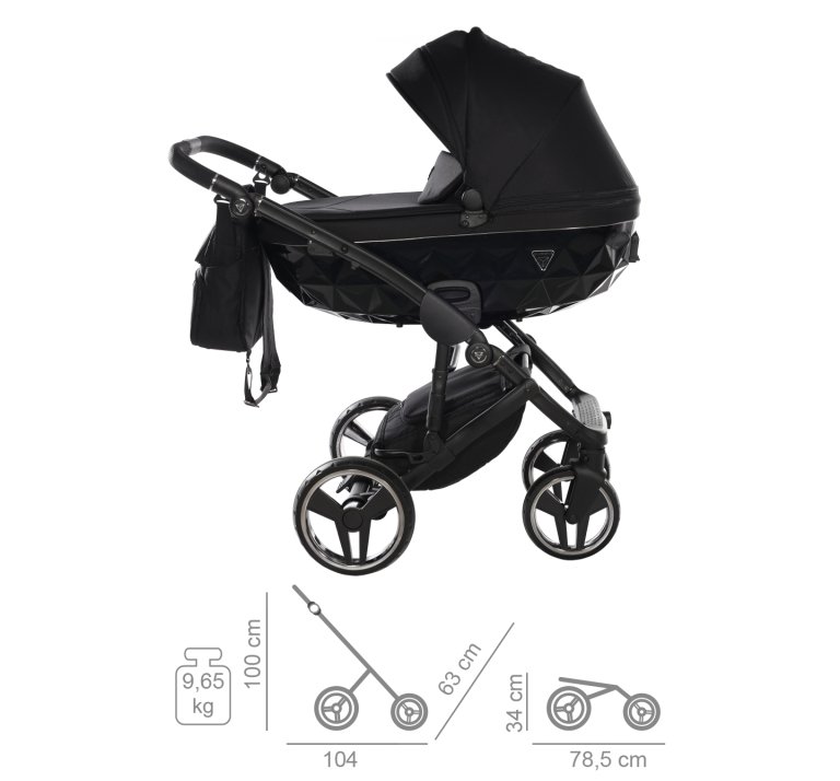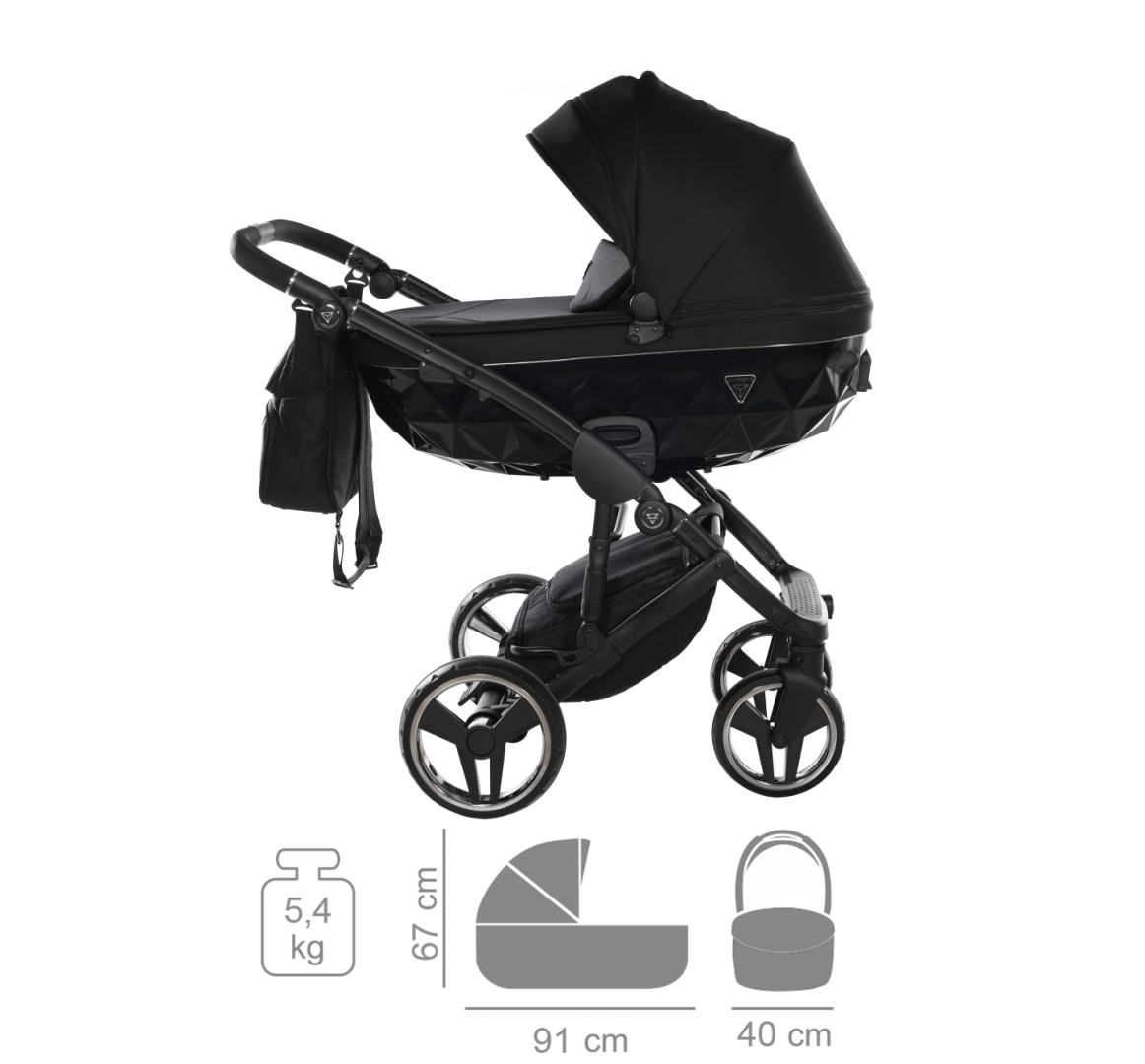 Gondola Junama Basic V3 zachwyca diamentową, połyskującą formą, która wyróżnia wózek na tle innych modeli. Jej obszerne wnętrze zapewnia dziecku pełną swobodę – nawet podczas spacerów w śpiworku.