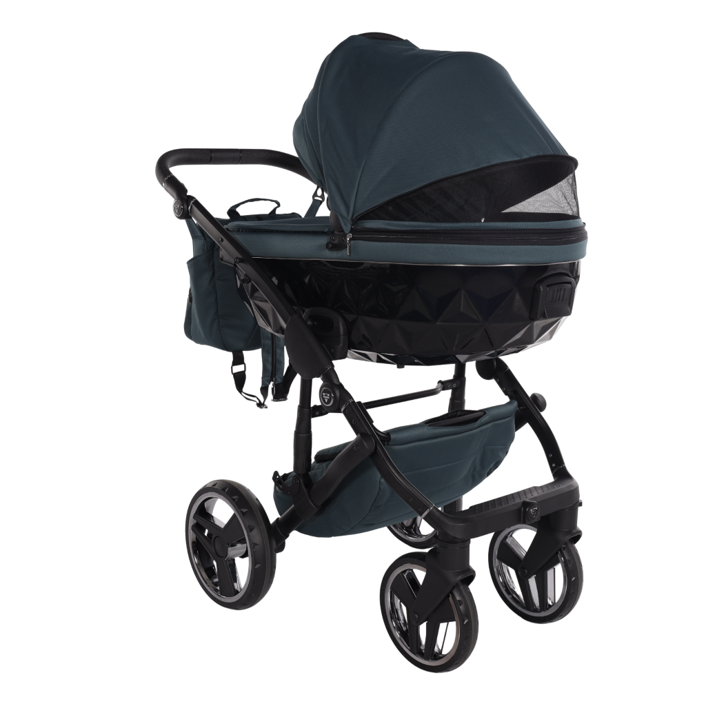 Gondola Junama Basic V3 zachwyca diamentową, połyskującą formą, która wyróżnia wózek na tle innych modeli. Jej obszerne wnętrze zapewnia dziecku pełną swobodę – nawet podczas spacerów w śpiworku.