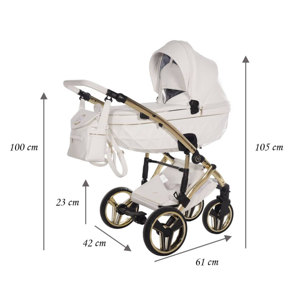 Dbałość o każdy detal, zastosowanie ekoskóry premium, efektownego Haftu 3D oraz zaawansowanych systemów jezdnych sprawiają, że wózki Junama kojarzą się z prestiżem, luksusem i niezawodnością. To idealny wybór zarówno do miasta, jak i na trudniejszy teren.
