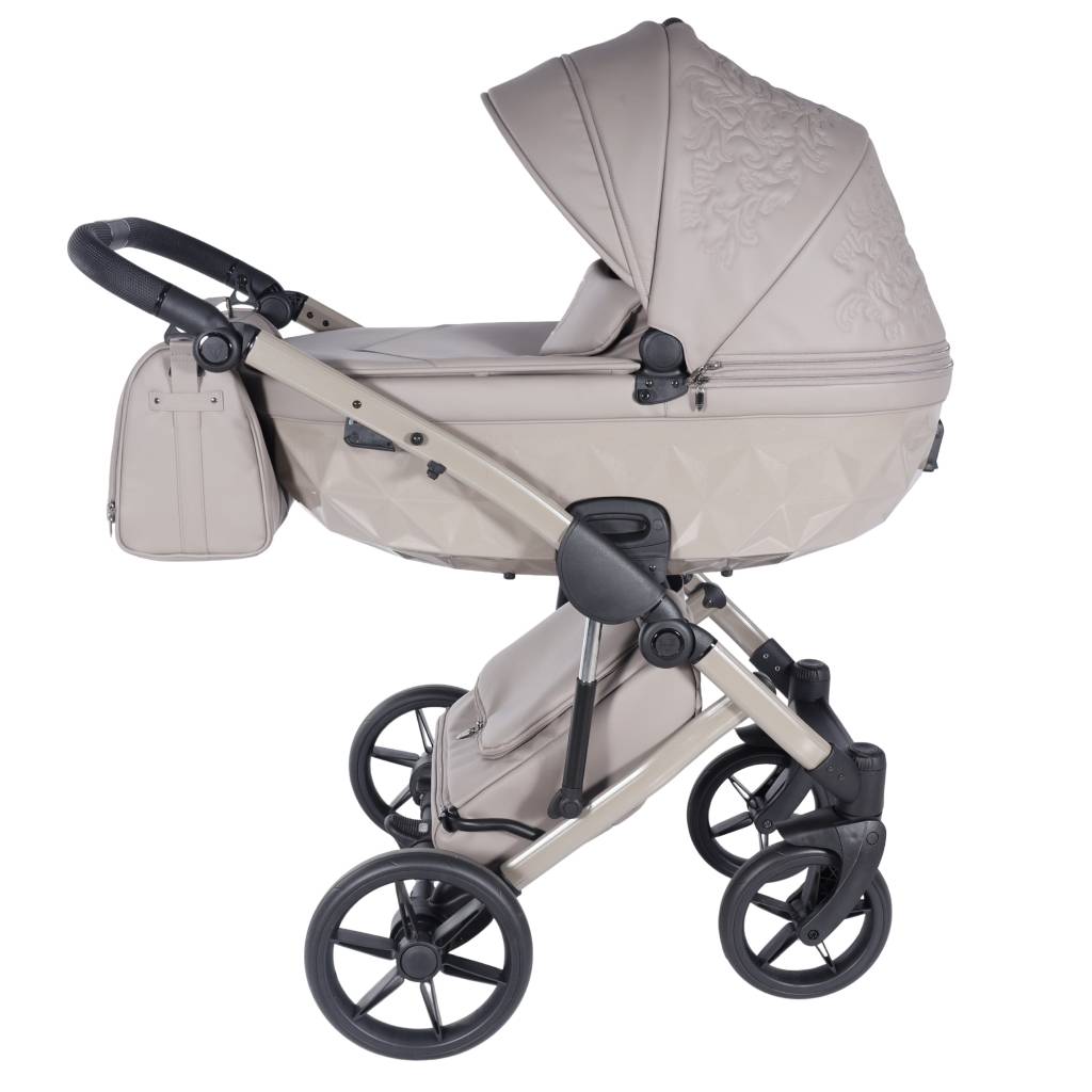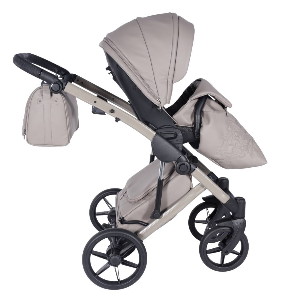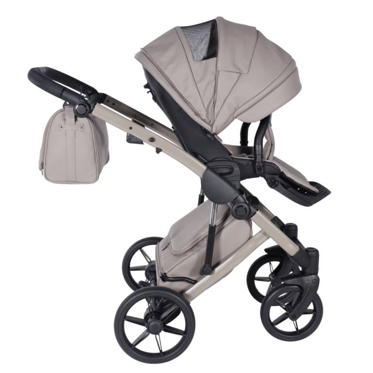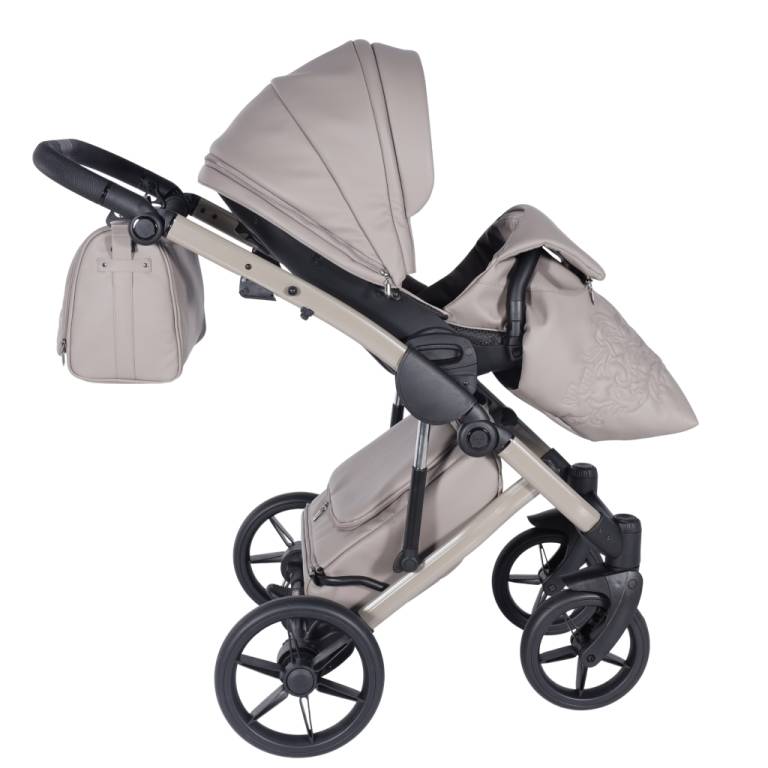 JUNAMA ENZO to wózek 2w1, który łączy w sobie nowoczesny design, komfort codziennego użytkowania oraz luksusowe wykończenie. Wykonany w całości z wysokiej jakości ekoskóry, jest nie tylko elegancki, ale także wyjątkowo praktyczny – łatwy w pielęgnacji i odporny na warunki atmosferyczne.